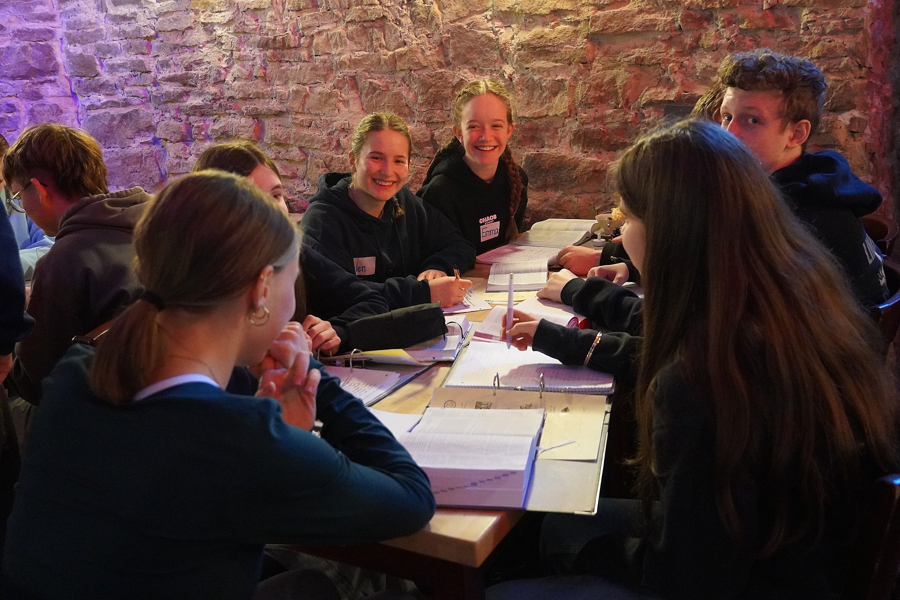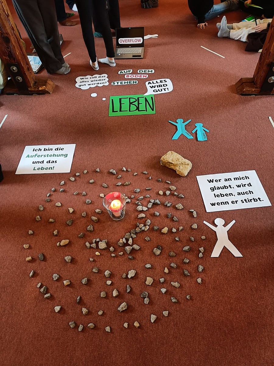 Nach dem morgendlichen Wecken und einem gemeinsamen Start im Innenhof machten wir uns, ausgerüstet mit einem Bibelvers, auf den Weg, um jede und jeder für sich mit Gott in den Tag zu starten. Nach dem Frühstück trafen wir uns zum gemeinsamen Bibelmeeting. Dort feierten wir Lobpreis und setzten uns mit verschiedenen „Ich-bin“-Worten Jesu auseinander.